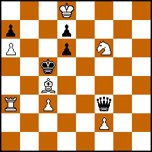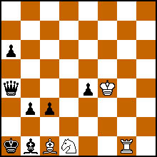 1) 2 siirron matti (2 #) 2) 2 siirron matti (2 #) 3) 3 siirron matti (3 #) 4) 3 siirron matti (3 #) 5) 4 siirron matti (4 #) 6) 5 siirron matti (5 #) 7) Voitto (+) 8) Voitto (+) 9) 3 siirron apumatti (a#3) 2 ratkaisua (2.1.1...) 10) 4 siirron apumatti (a#4) 3 ratkaisua (3.1.1...) 11) 2 siirron itsematti (i#2) 12) 4 siirron itsematti (i#4)